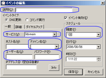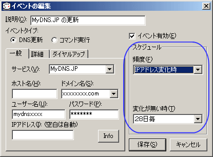 頻度(F)・・・デフォルトでは「1回」であるが「IPアドレス変更時」が推奨される。