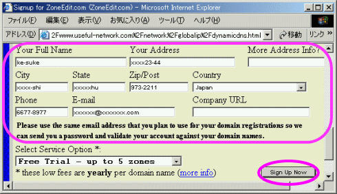 1)zoneeditの登録(http://www.zoneedit.com/より)