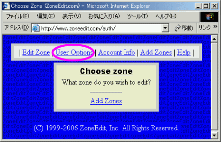 2)自ドメインの登録へ(zoneedit設定の続き)→