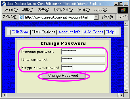 http//www.ZoneEdit.com/authをクリックして、新規パスワードを設定します。