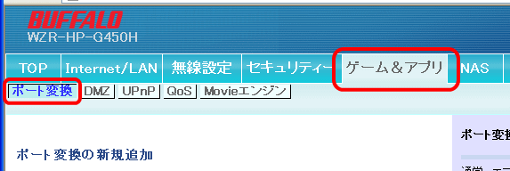 ・WZR-HP-G450H(BUFFALO製)によるアドレス変換