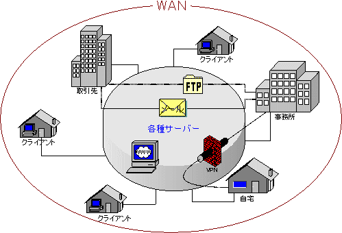 インターネット上に存在する各種サーバーは、LAN内にあります。