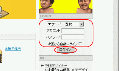 ・▼サーバー選択・・・登録時のサーバーと同一のものを選択