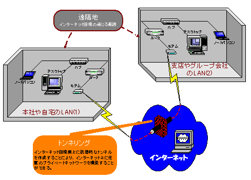 インターネット回線を利用して遠隔地との仮想プライベートネットワークを構築する手法であります。