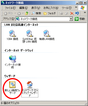 ウィザードの「新しい接続ウィザード」をダブルクリック