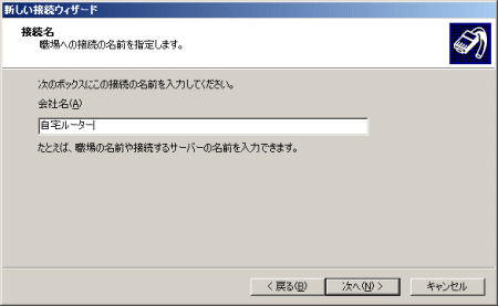会社名(A)に自分のわかりやすい接続名称を入力して[次へ(N)>]をクリック