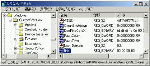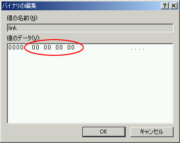 「link」をダブルクリックして値のデータを00 00 00 00とする。