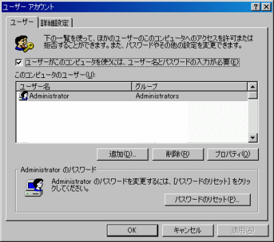 Win2kでは「このコンピュータを使うには、ユーザー名とパスワードを入力する必要があります(E)」