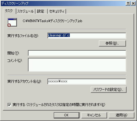登録した設定でディスククリーンアップを行うコマンドをタスクに登録します。